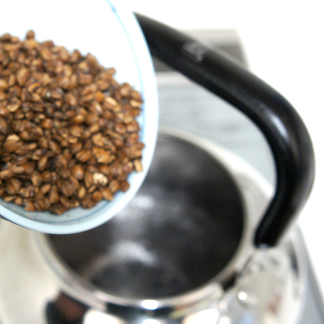 丸粒麦茶はお湯で煮出して作るのが基本です。