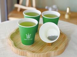 日本初!茶葉入り紙コップ(ふた付き)です。茶葉が出てこないように網が付いています。