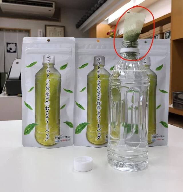 ペットボトルの口へ出入りしやすい細い特殊ティーバッグです。