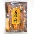 原材料:もち米(国内産100%)、植物油脂、しょうゆ(小麦・大豆を含む)、みりん、砂糖、かつおエキス、でん粉分解物、でん粉/加工デンプン、調味料(アミノ酸等)、カラメル色素、香辛料抽出物