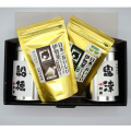 千葉県産切れてる缶入り焼きのり2種と日本一おいしい伊勢茶ティーバッグ緑茶とほうじ茶のセットです。