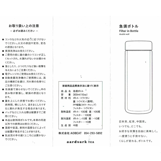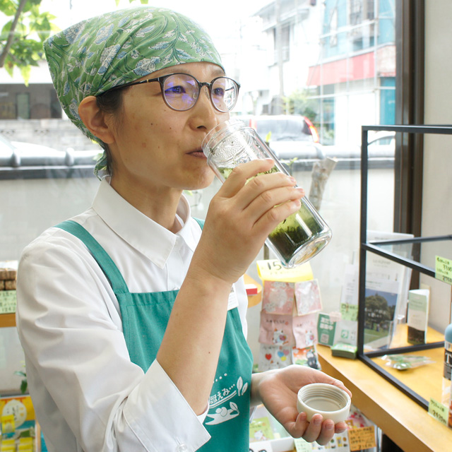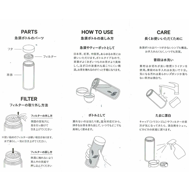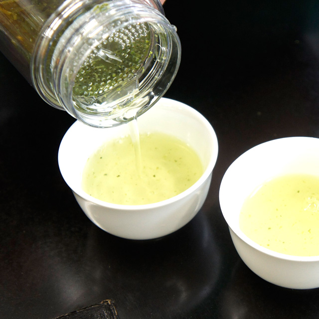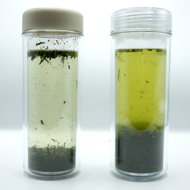 実際にお茶を入れてみました。茶葉「伊勢の誉」を5gをボトルに入れ水とお湯を300ml入れてみました。