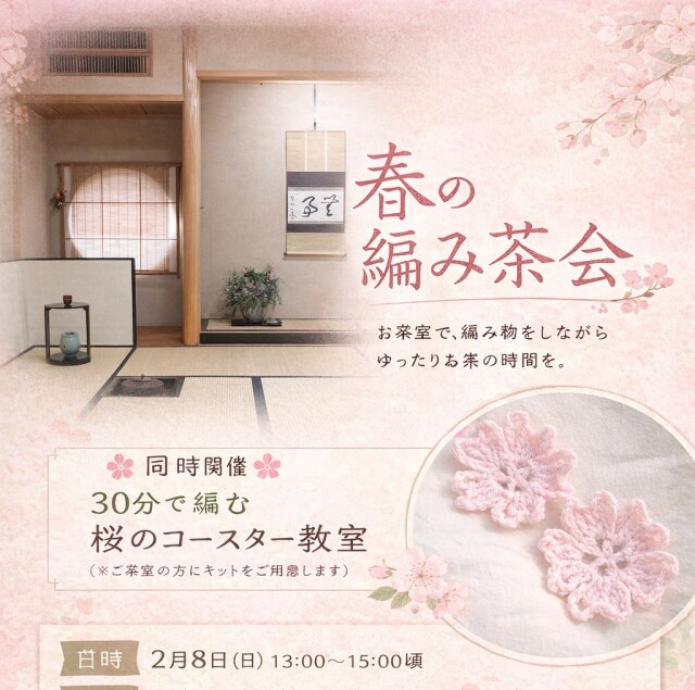 お茶室で「春の編み茶会」