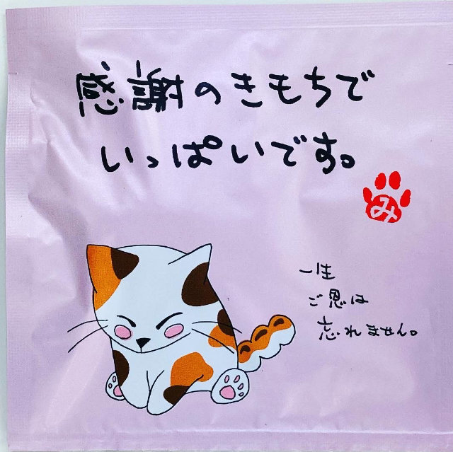三重県産伊勢茶使用 いちご紅茶糸付きティーバッグ2個入 みたらしちゃんパッケージ「おめでとう!!」\100 (税込)
