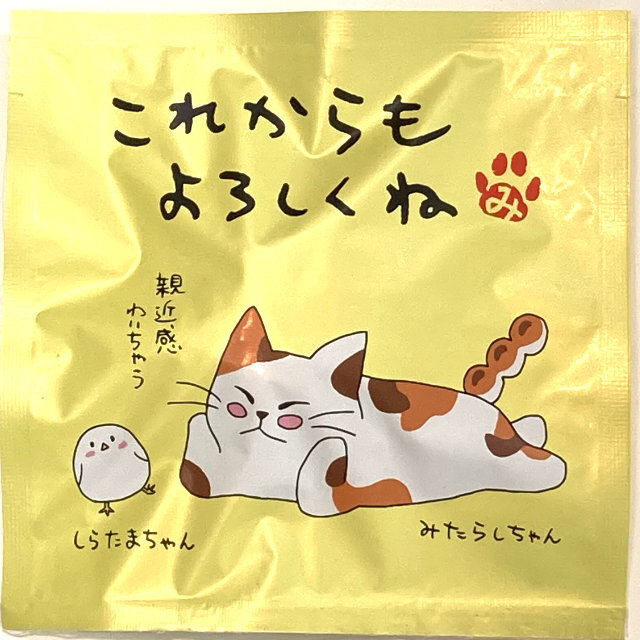 三重県産伊勢茶 ほうじ茶 糸付きティーバッグ1個入 みたらしちゃんパッケージ「これからもよろしくね」\150 (税込)